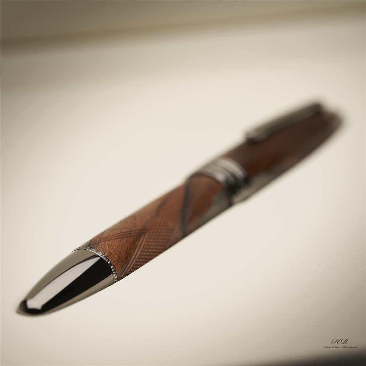 • Material von Kappe & Korpus: Ausgewähltes Walnussholz | Mit Karmuster verziert