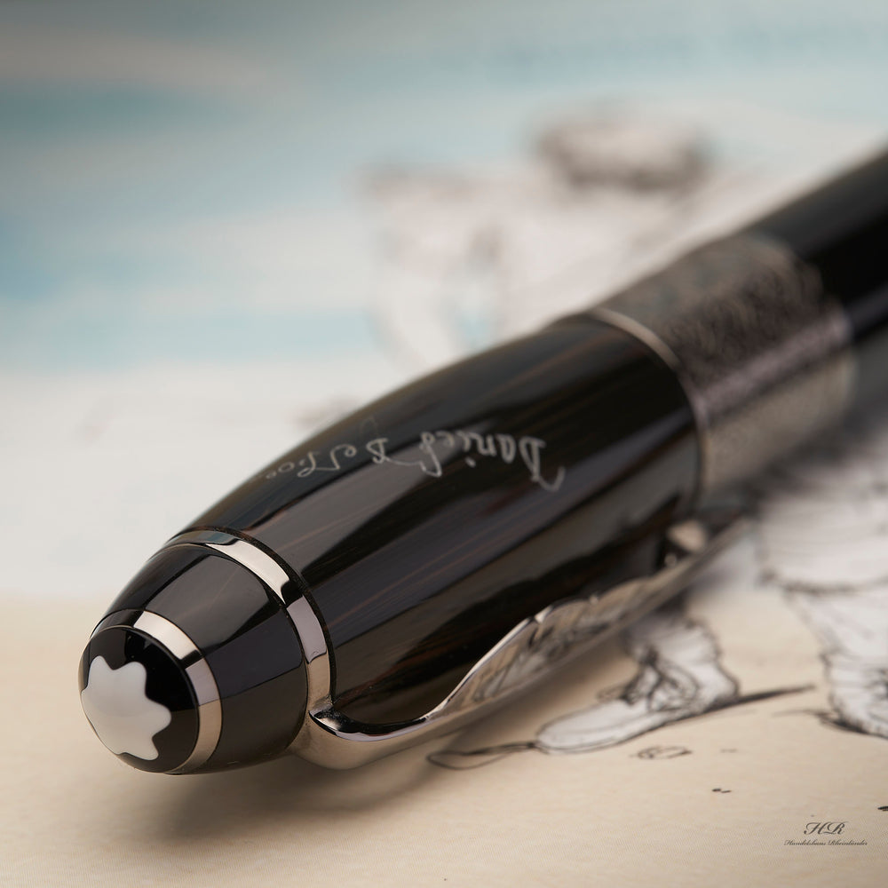 Motive aus Leben und Werk fließen in Kappe, Korpus, Clip und Feder ein. Ornamentik, Zitate, Ortssilhouetten oder Figuren werden auf der Oberfläche inszeniert. So wird jeder Füllhalter zur tragbaren Hommage an einen Schriftsteller, der Literaturgeschichte geschrieben hat.