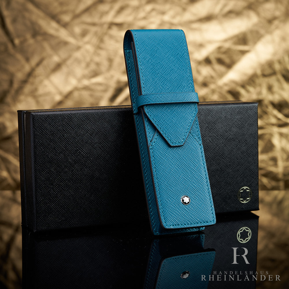 Montblanc Leather Goods Sartorial Double Pen Pouch Fern Blue Leather ID 131747