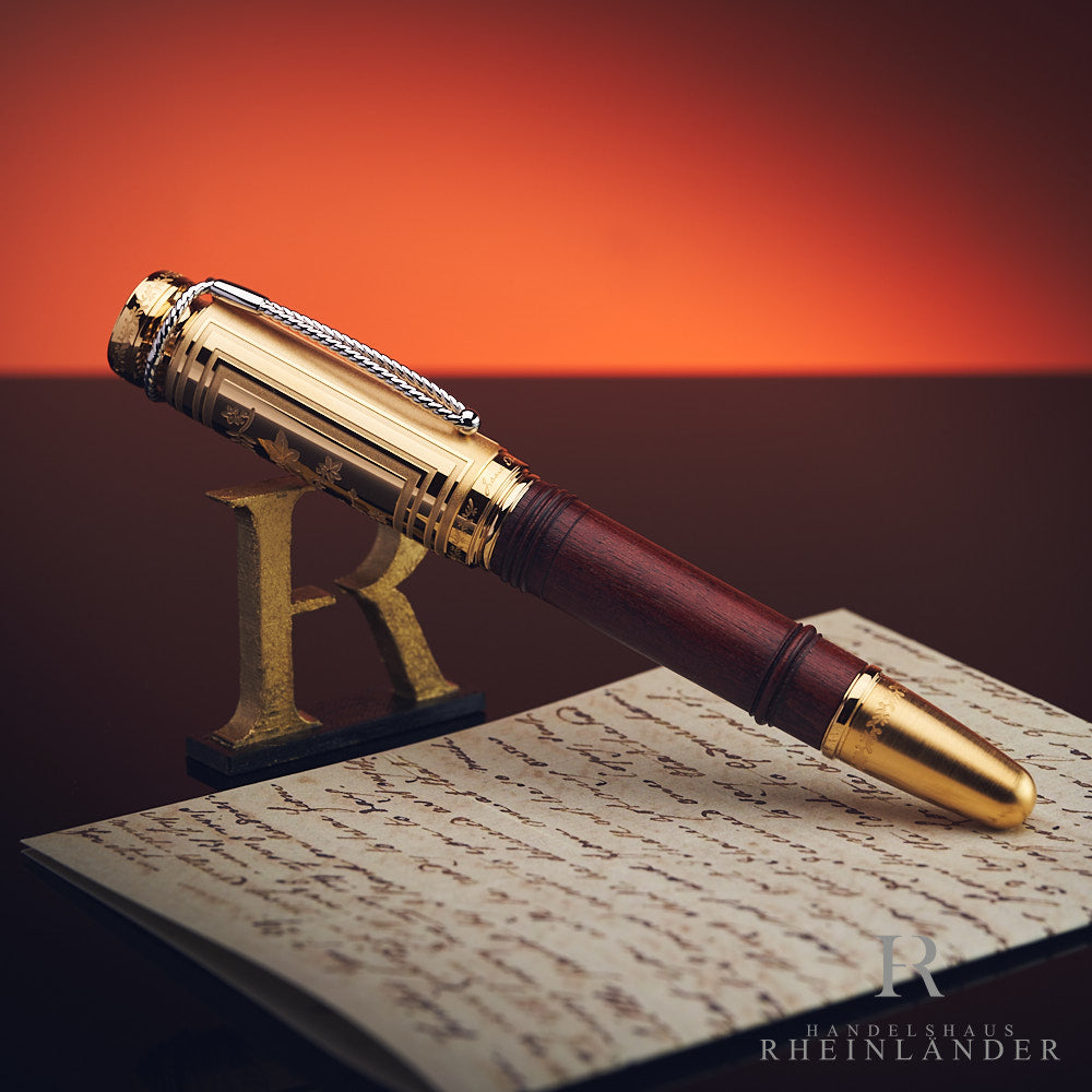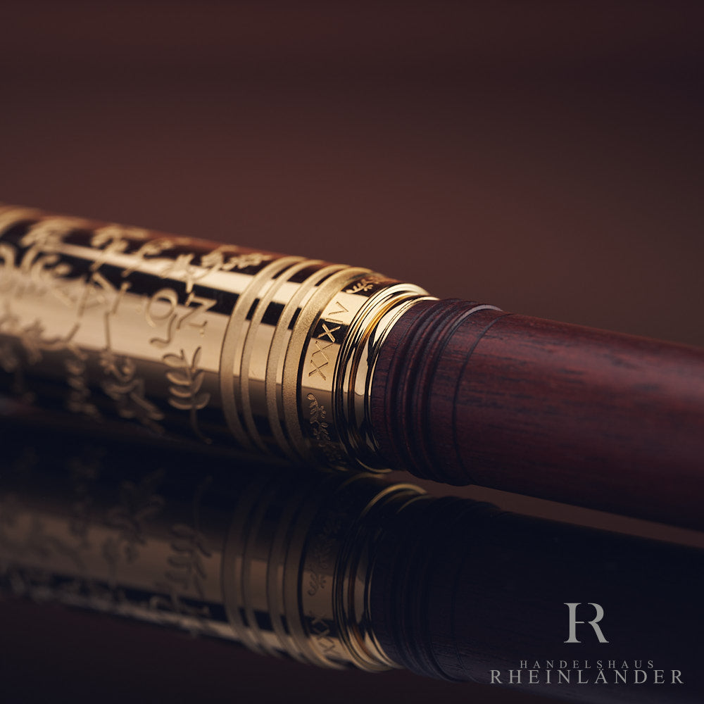 • Special feature: Design based on a seal stamp | Silhouette of Jane Austen engraved on the nib | Lettering "By a Lady" adorns the wooden inlay of the cap head | Montblanc emblem made of mother of pearl