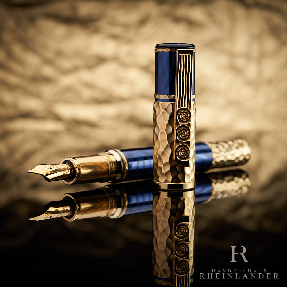 blue varnish - Nib made of 750 yellow gold with embossing “Almond tree