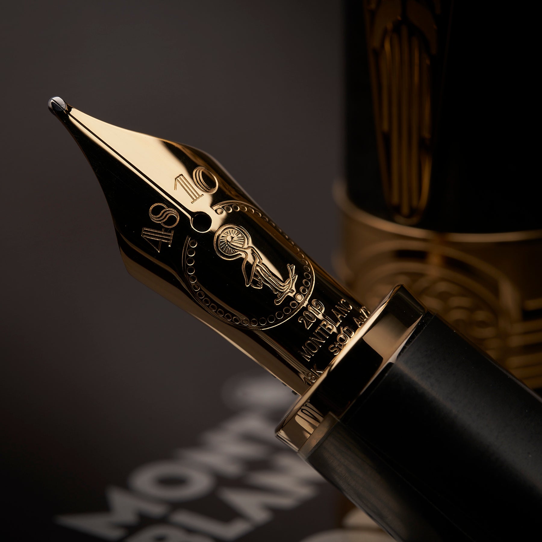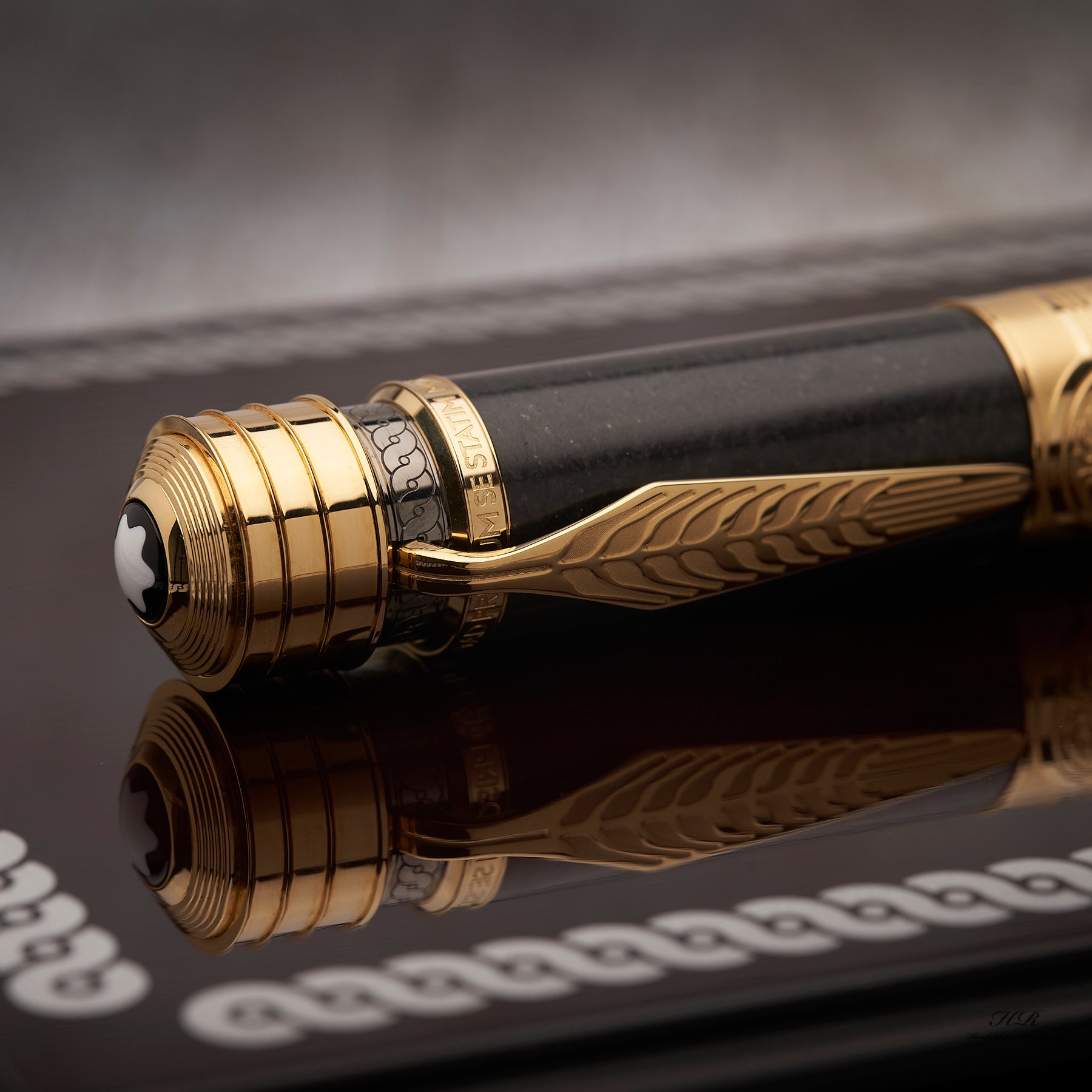 Goldfeder und Gravur an der Kappe des Montblanc Hadrian 4810 Füllfederhalters im Detail