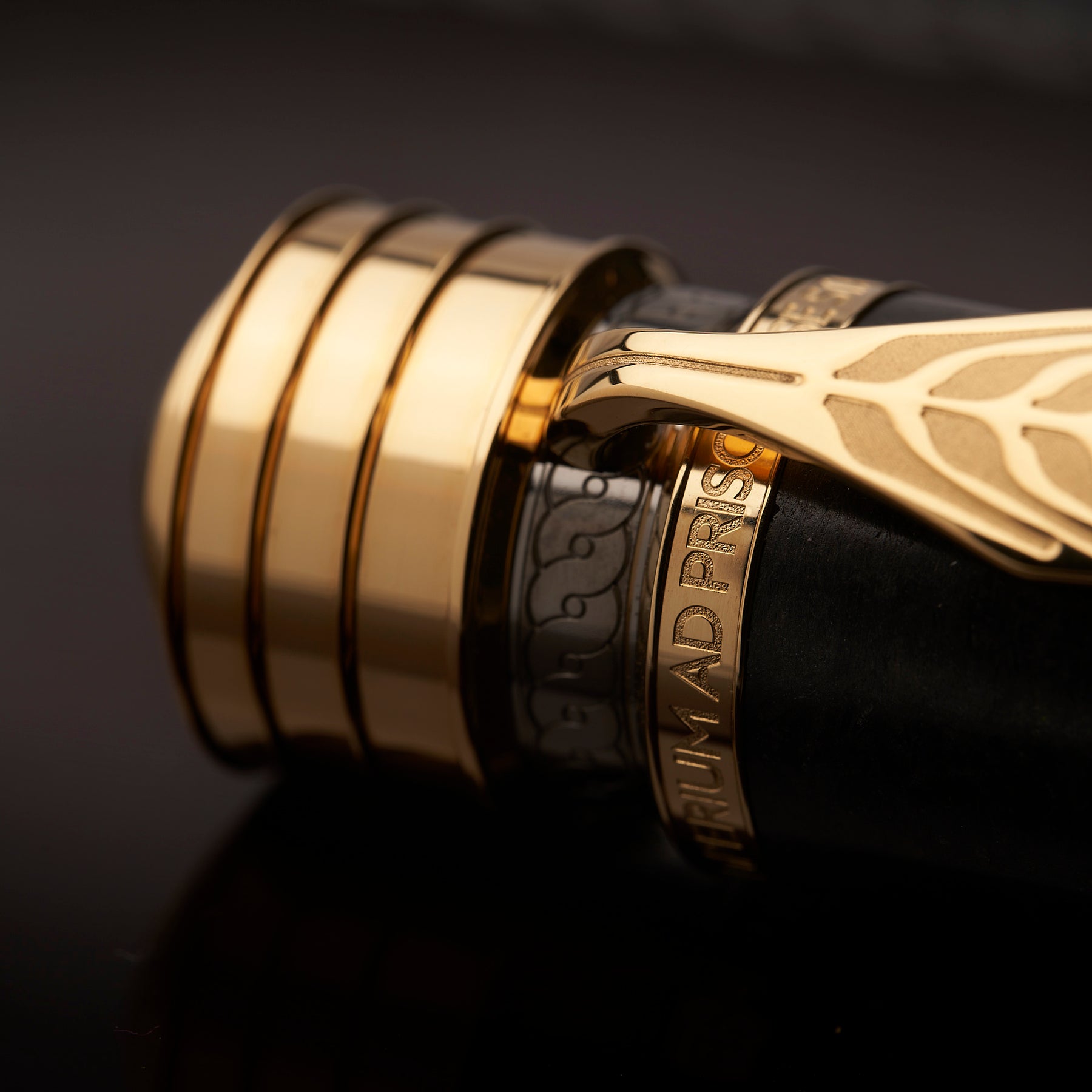 Detailaufnahme der Gravur am Kappenende mit Übergang zum Schaft des Montblanc Hadrian 4810 Füllers