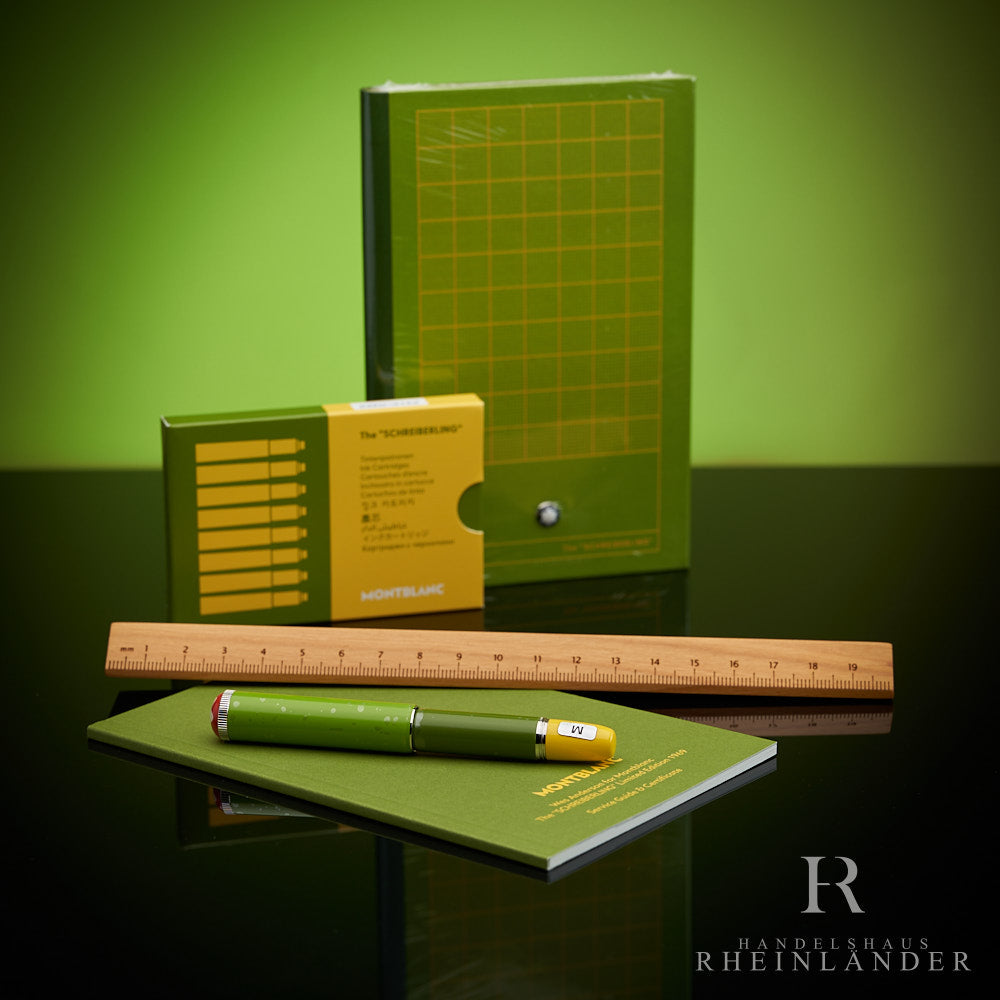 - "Schreiberling"-Set bestehend aus Lineal, Notizbuch und Patronen