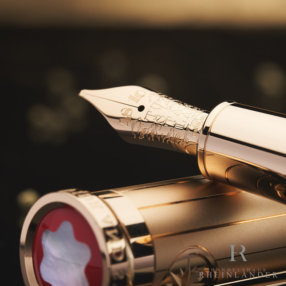 • Besonderheit | Special Feature: Montblanc Logo im Kappenkopf aus Perlmutt, Verziert mit Anlehnungen an Schiffsdetails, Graviertes Zitat am Kappenkopf |