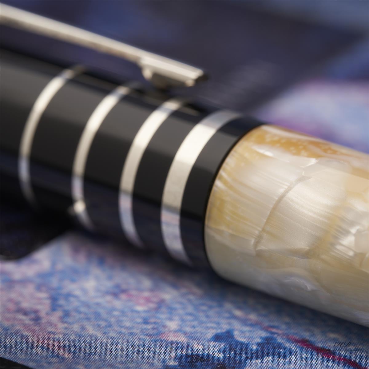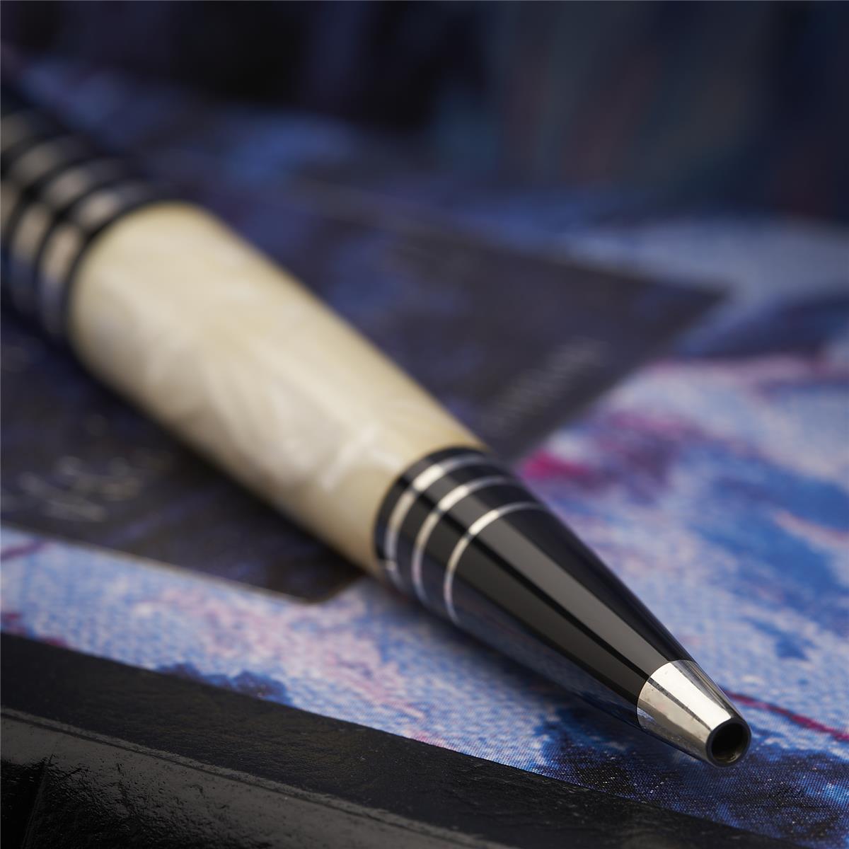 • Besonderheit: Weiß schimmernder Korpus bildet Konrast zur schwarzen Kappe | Kappe mit Signatur des Schriftstellers